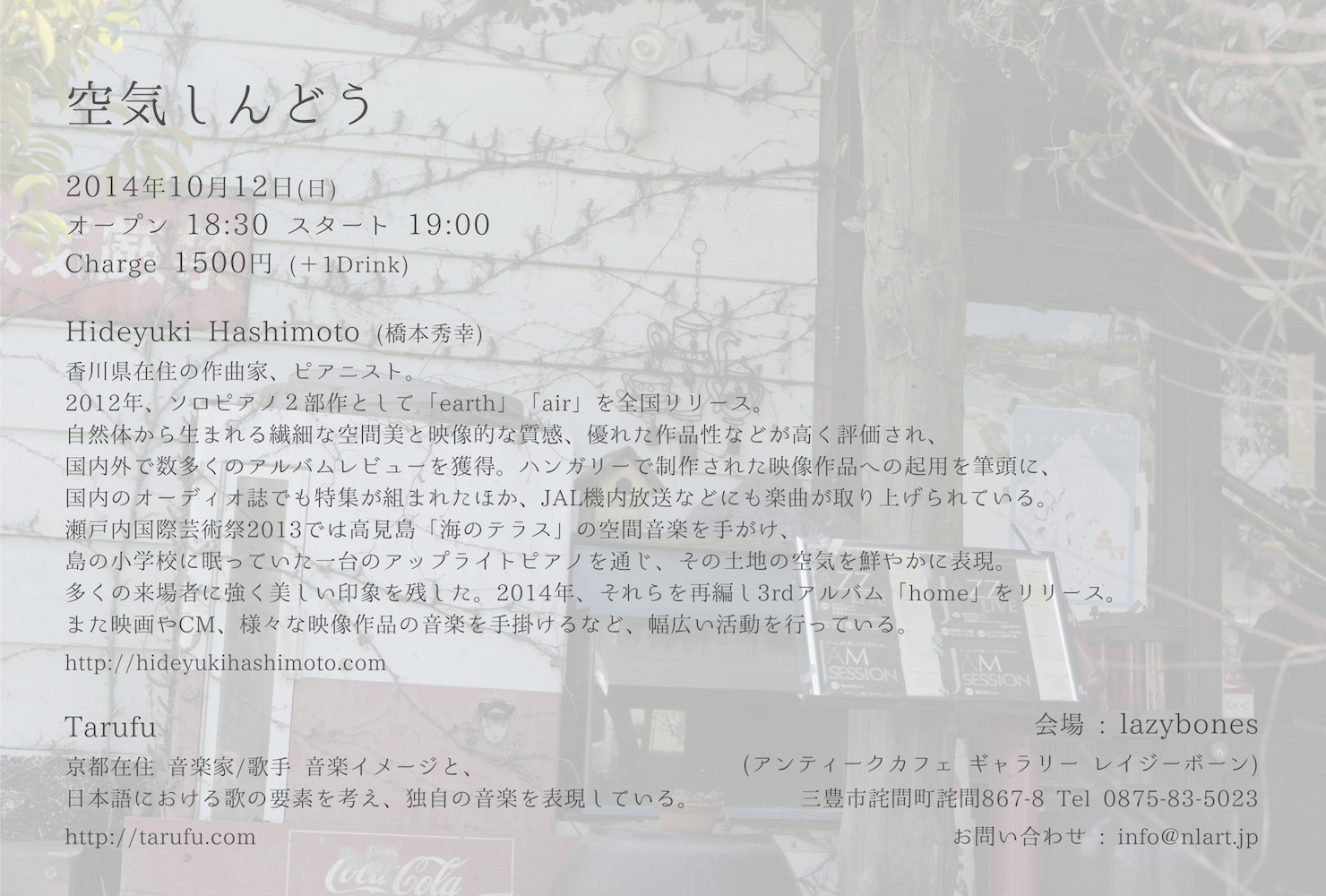京都より音楽家のTarufuさんを迎えてアンティークカフェlazybonesにて。