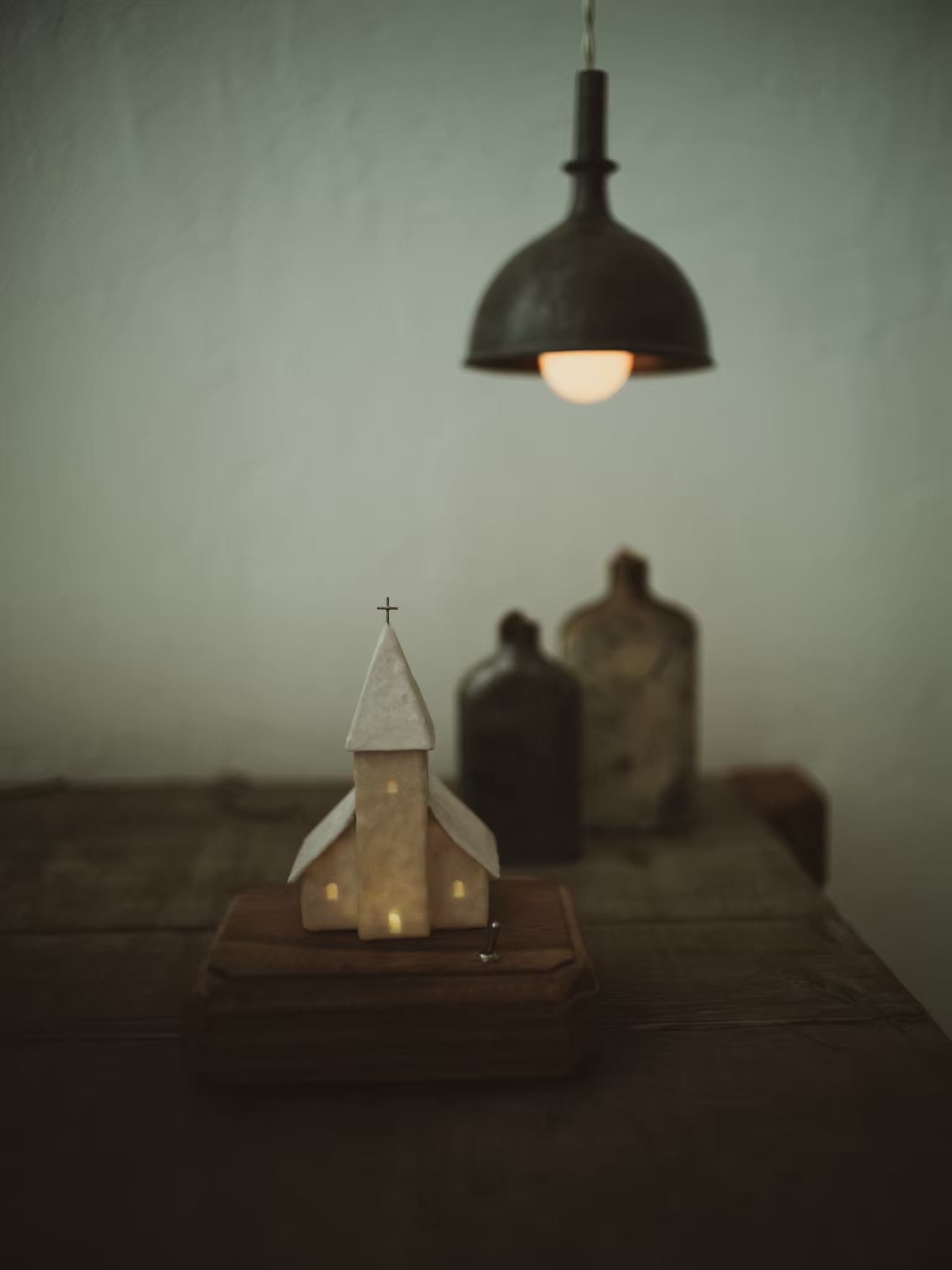 ある日、「最近新しい灯りを作っている」ということで見せてくれたのが、今回のモチーフにもなっている灯り「church」です。